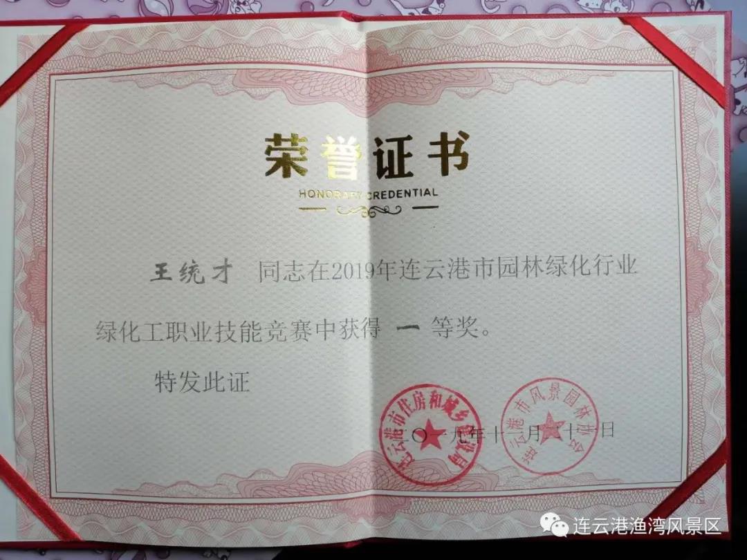 漁灣公司王統(tǒng)才在省市園林綠化技能競賽中獲獎