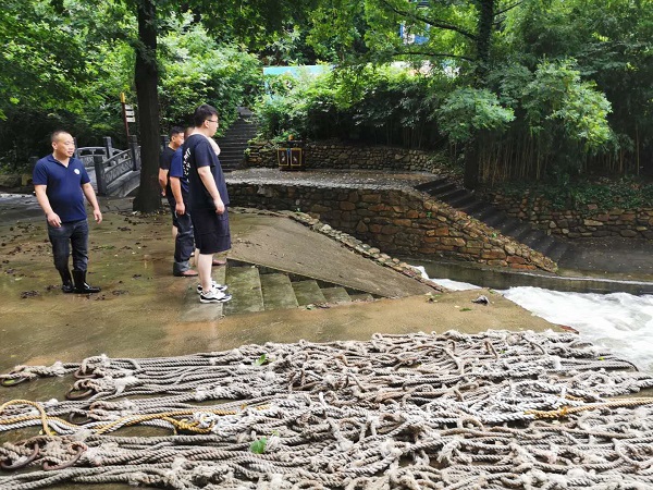 7月11日下午,文旅集團(tuán)董事長江頌青通過視頻會(huì)議傳達(dá)云臺山景區(qū)管委會(huì)關(guān)于防汛緊急通知,要求全力做好各項(xiàng)防御準(zhǔn)備。公司會(huì)后立即組織員工巡堤查險(xiǎn),提前預(yù)降漂流塘壩水位,檢查河道是否有積澇隱患,對吊具、電子屏、鐵皮房、漂流艇等戶外設(shè)施進(jìn)行加固處理,所有設(shè)備統(tǒng)一斷電,嚴(yán)格落實(shí)24小時(shí)專人值班和領(lǐng)導(dǎo)帶班制度,每隔半小時(shí)組織巡查,兩人一組,及時(shí)匯報(bào)汛情,確保安全度汛。