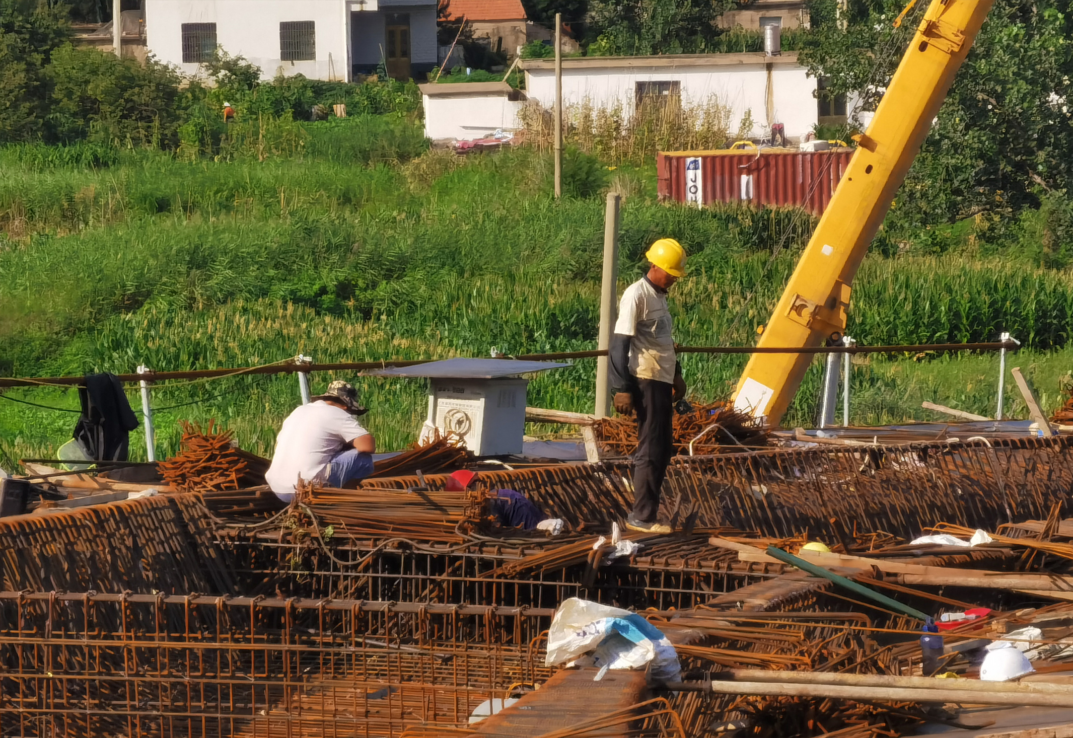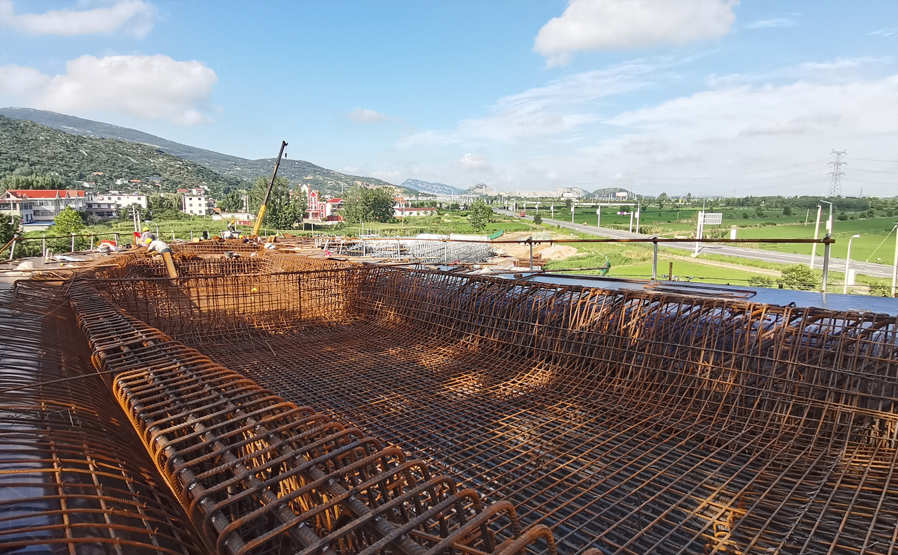 在景區(qū)東磊延伸段項(xiàng)目的施工現(xiàn)場,建設(shè)者們正頂著烈日在橋上綁扎箱梁鋼筋。據(jù)項(xiàng)目施工方介紹,目前已完成橋梁下部結(jié)構(gòu)、道路路基及附屬設(shè)施施工,下一步將進(jìn)行橋梁上部結(jié)構(gòu)混凝土澆筑和路面施工。