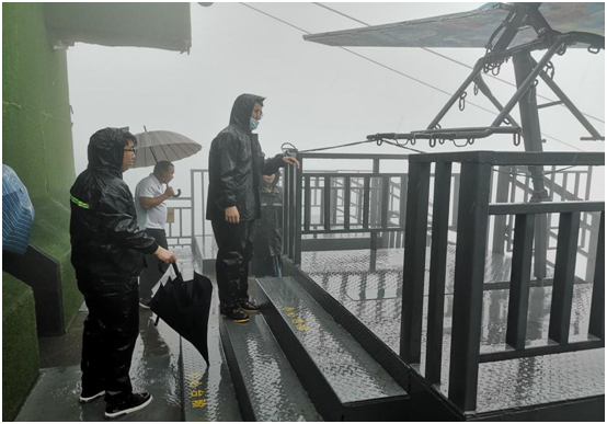 為全面做好防臺(tái)工作,確保項(xiàng)目現(xiàn)場(chǎng)安全穩(wěn)定,集團(tuán)公司副總于凱帶隊(duì)檢查漂流項(xiàng)目、滑索項(xiàng)目防臺(tái)措施情況,重點(diǎn)查看了應(yīng)急物資是否配備齊全、吊具是否加固、電源是否關(guān)閉,特別強(qiáng)調(diào)漂流下站水庫(kù)要做好及時(shí)排水,密切關(guān)注汛線水位,并做好人員值班值守,明確職責(zé),嚴(yán)陣以待。