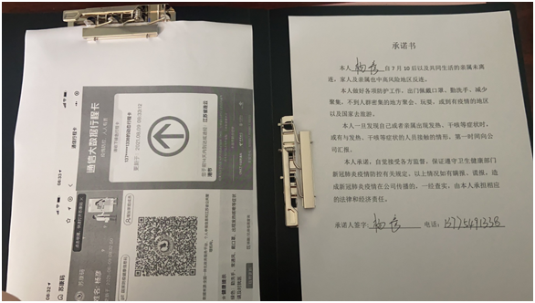 安排專人每天4次對員工進行體溫監(jiān)測,辦公室每周收集員工行程碼、健康碼,并做好登記,建立個人誠信檔案。