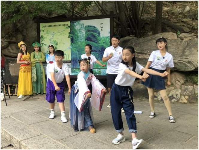 在前期激烈才藝展示中脫穎而出的4名小嘉賓,與2名主持人共同組成童游小分隊(duì),在漁灣景區(qū)工作人員的帶領(lǐng)下,前后游覽了神魚化龍廣場、九孔橋、三龍?zhí)?、二龍?zhí)丁⑸徎ǔ?、一線天等地。每到一處,小分隊(duì)員們都認(rèn)真聽取工作人員的講述,在享受到視覺盛宴的同時(shí),了解漁灣景區(qū)一山一水一石中蘊(yùn)藏的文化故事。