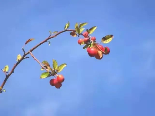 春賞花來冬看果,在連徐高速、環(huán)云臺(tái)山大道道路兩側(cè),如葡萄般大小的海棠果,或三四顆一簇,或五六粒一團(tuán),在初冬清晨的陽光照耀下,一串串、一簇簇紅艷艷的海棠果綴滿枝頭,像密密麻麻的櫻桃,又像是小燈籠,分外妖嬈。一些原本干癟的果子,被鳥兒啄開后,讓已泛紅的果子更加艷麗,如同一朵朵梅花綻放在枝頭,讓人拍手稱奇。
