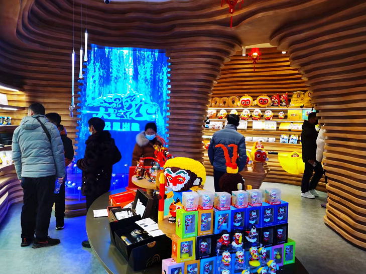 大圣公司西游文創(chuàng)旗艦店吸引了眾多親子家庭游客駐足,琳瑯滿目、栩栩如生的唐僧師徒四人造型的文創(chuàng)產(chǎn)品讓孩子們愛不釋手、邁不開腿。